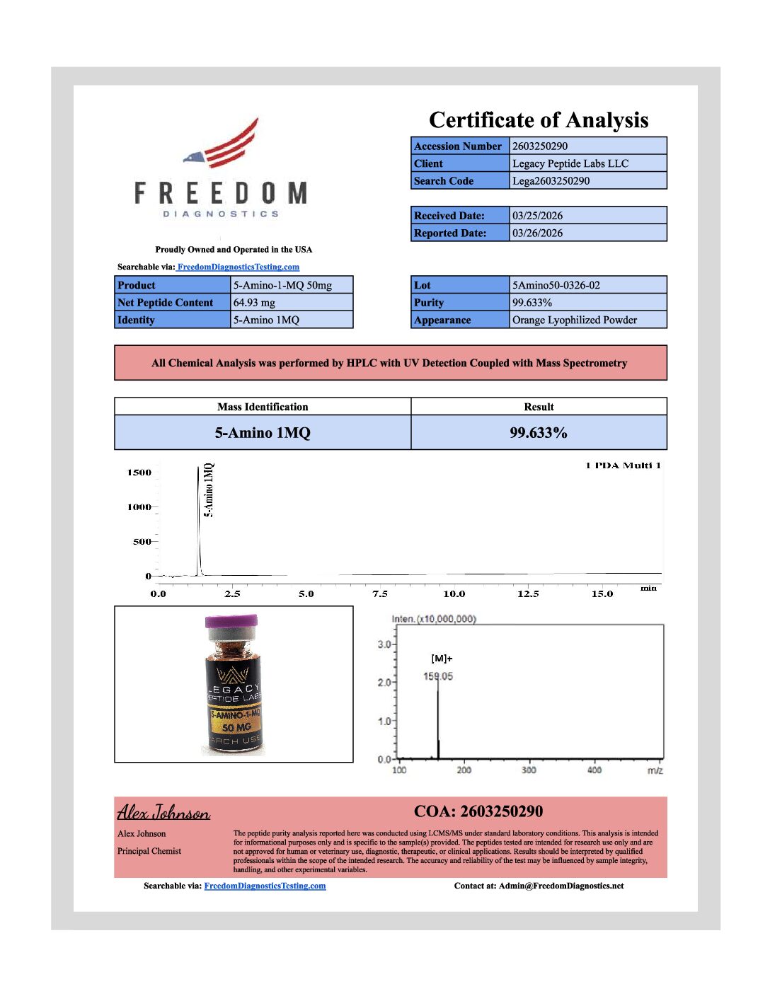 5-AMINO-1-MQ is a research compound intended for use by qualified professionals in controlled laboratory environments. It is not intended for human or veterinary use, clinical application, diagnostic purposes, or consumption of any kind.