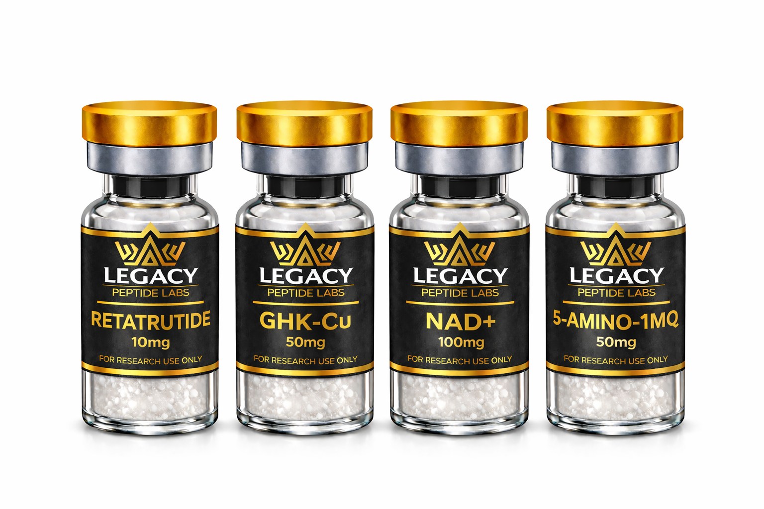 Support recovery, cellular function, and metabolic research with this advanced multi-compound stack featuring GHK-Cu, NAD+, 5-Amino-1MQ, and Retatrutide.